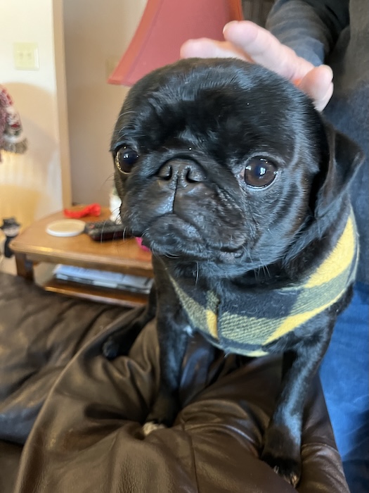 Sunday morning it was even colder than Saturday, and after having some waffles at the hotel, we headed over to see Nancy and Dave, and to meet some new pugs. Nancy also let me open my Christmas present from her early, but Dad was too slow and didn't get a picture. I got a book on pirates and one on the Plantagenet dynasty by Dan Jones (who wrote the book on Henry V I read earlier this year).