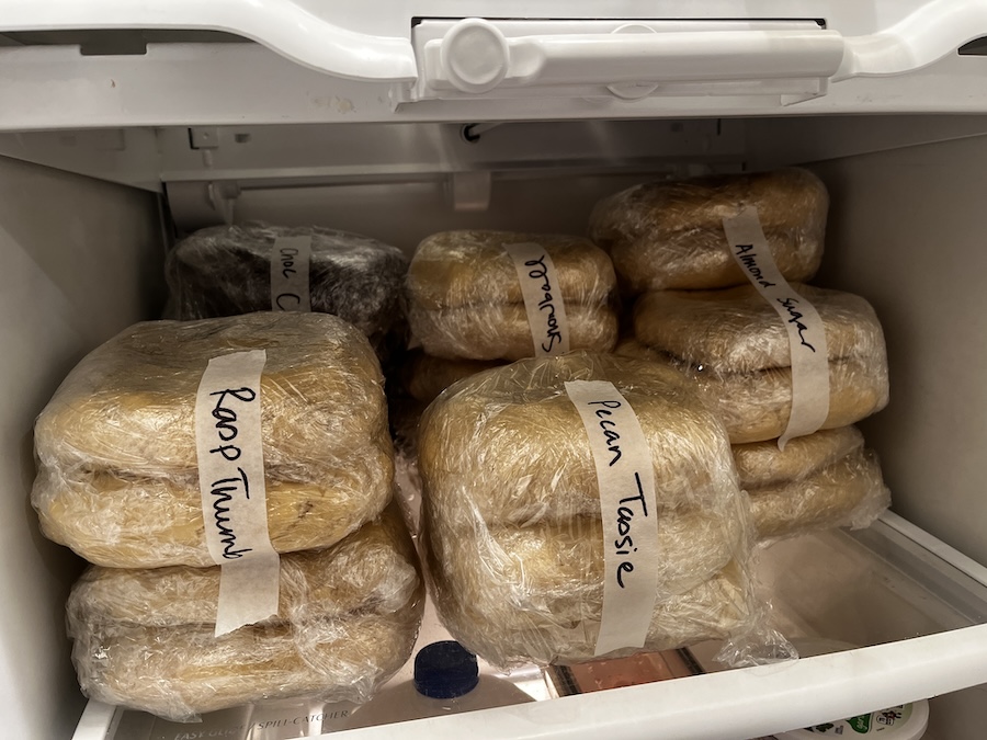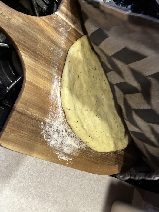 As if Mom was not baking enough already, she made blueberry muffins in the morning, as well as more pizza dough.