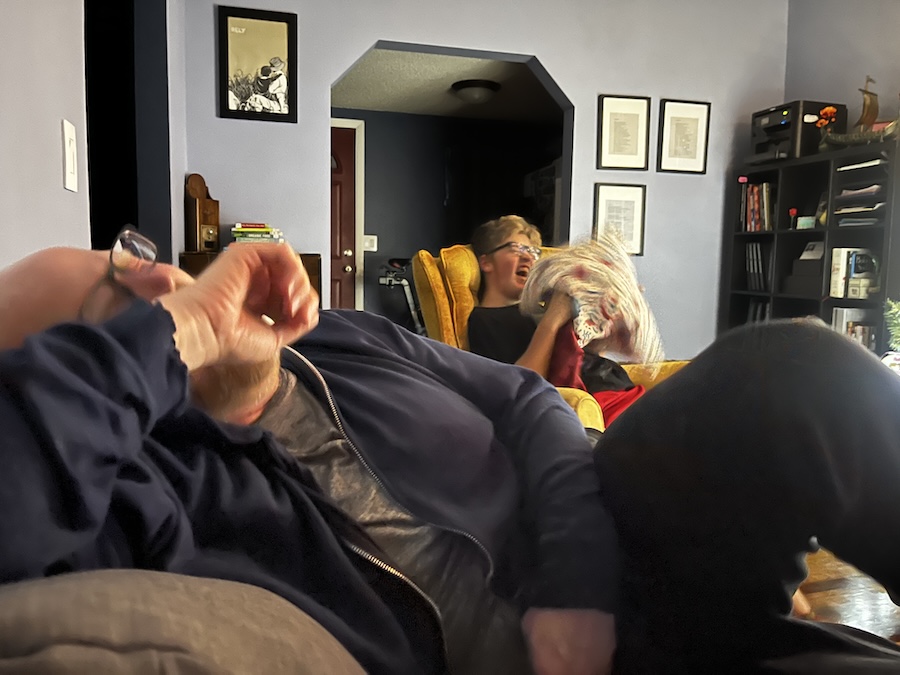 Laughing at the movie - if you've seen it, you can probably guess what we are laughing at.