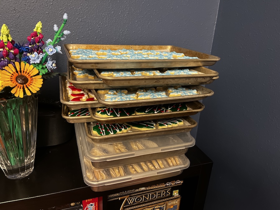 In the morning, it was time to pack up the treats for delivery! Mom and Dad did that, I was playing with LEGO.